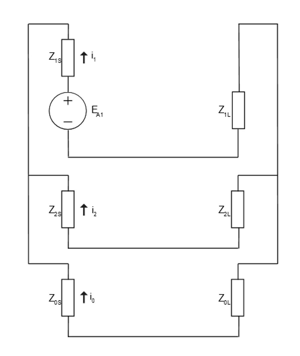 Para um engenheiro de proteção experiente, a figura 2 se parece muito com a análise de uma falta fase-fase, o que geralmente faz sentido. Em uma falta fase-fase, a fase intacta parece ter impedância infinita em comparação com uma falta entre os dois outros condutores. A única diferença é que, em uma falta fase-fase, consideramos apenas a impedância da linha, enquanto em uma situação de condutor partido, consideramos a impedância de carga. Conforme falhas de fase para fase, para o cenário de condutor partido em uma linha trifásica, nosso circuito equivalente se torna: