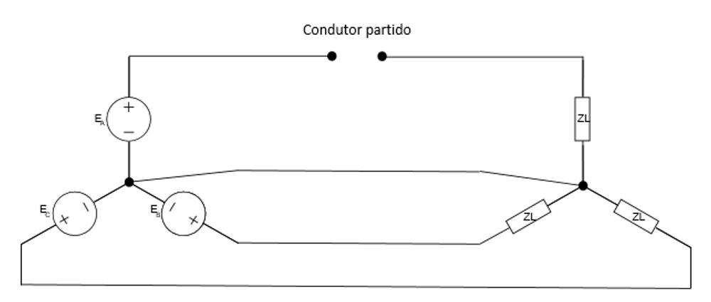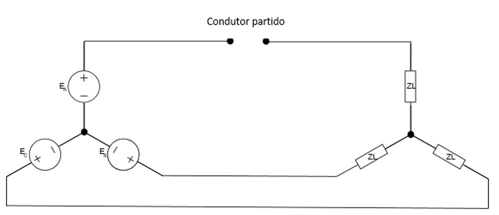 Ao considerar o cenário de um condutor partido, precisamos, primeiramente, considerar o que acontece em um sistema de três fios.