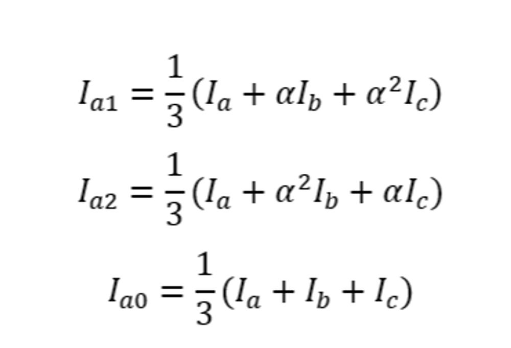 Ao inserir os valores para cada medição de fasor, podemos derivar a magnitude e a fase de cada um dos componentes da sequência. Em um cenário ideal, um alimentador de distribuição íntegro não deve exibir desequilíbrios e deve, portanto, apresentar apenas uma corrente de sequência positiva. Isso pode ser confirmado por meio da substituição dos valores por um conjunto de fasores de corrente equilibrados nas equações, observando-se as adições resultantes ao zero para cada equação, exceto para a sequência positiva.